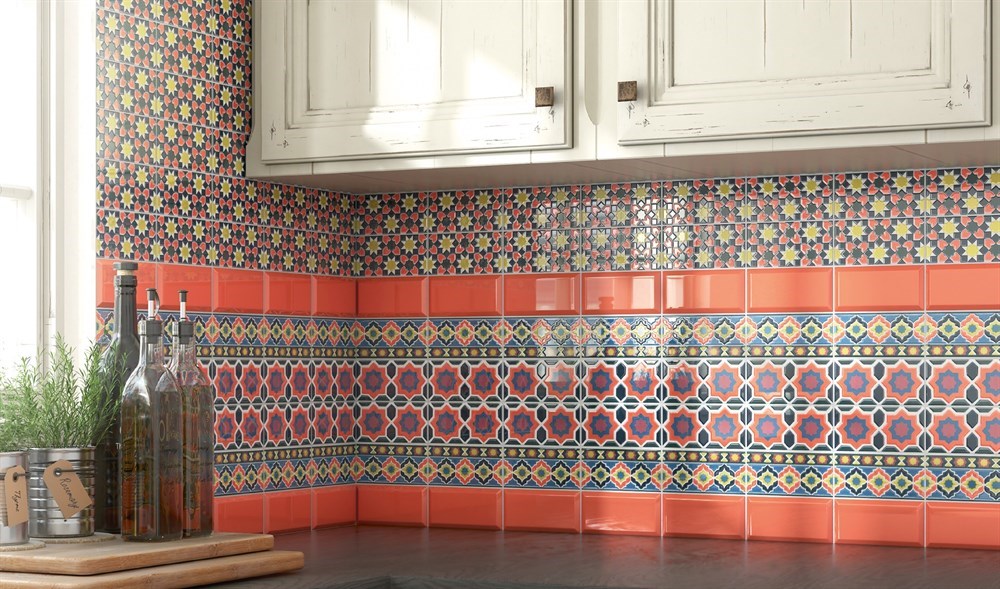 Керамическая плитка «Алькасар». Серия керамической плитки с глянцевой поверхностью, вдохновлённая убранством величественного дворца Алькасар - резиденции испанских королей в Севилье. Всё многообразие красок испанского юга заключено в восьми декорах с мавританскими узорами. Современное прочтение классического направления “мудехар” делает сочетания цветов одновременно актуальными и традиционными, что позволяет использовать плитку для оформления помещений в достаточно широком диапазоне стилей, от классических до современных.