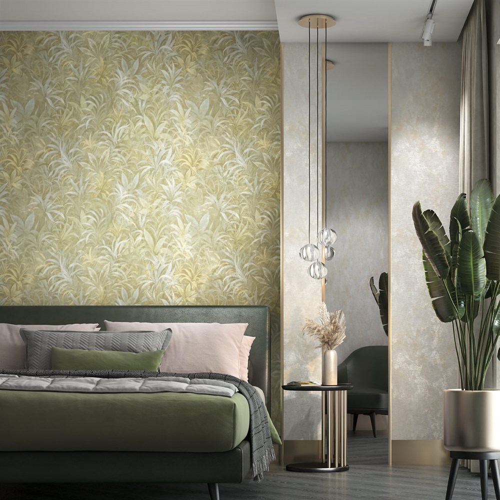 Обои передают красоту экзотической природы. Зелень, словно нарисована пастелью. Это подчеркивает матовая поверхность полотна. Вместе с насыщенным, контрастным мотивом "Экзотики" в гамме преобладают нежные оттенки. Для тех, кто предпочитает сдержанные тона в интерьере. Деликатное тиснение делает ее объемной, добавляет реалистичности. Однотонные фоновые обои с легкой фактурой дополняют, но не отвлекают внимание от мотива.
