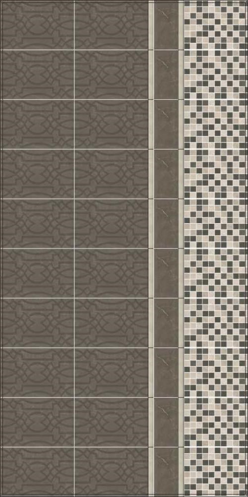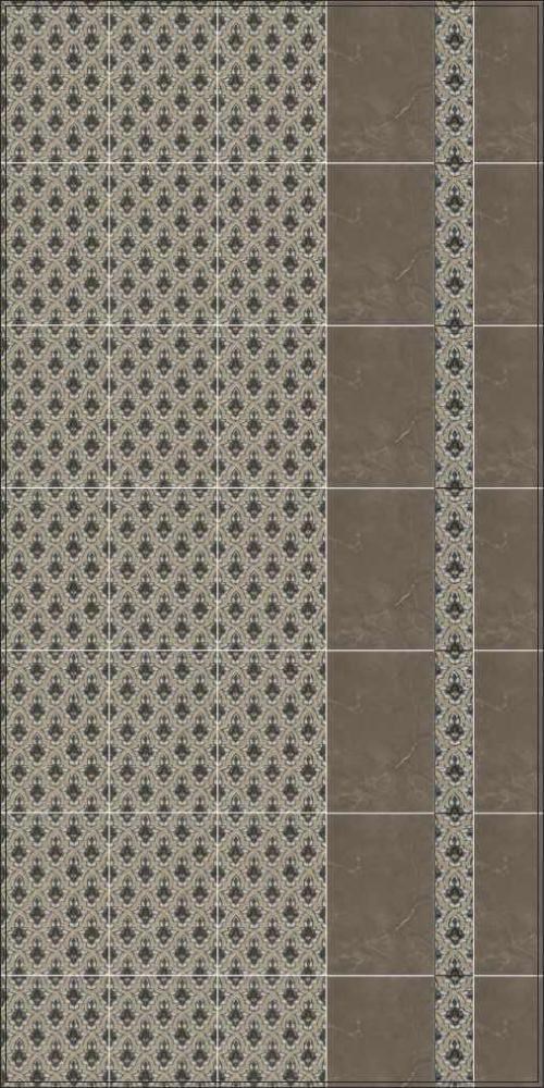 Керамическая плитка «Эль-Реаль». Неоклассическая серия, вдохновлённая богатым убранством средневекового замка Эль-Реаль, изумительное сочетание стиля “мудехар” и готики с нотками Ренессанса. Глянцевая поверхность с текстурой мрамора породы “Имперадор” представлена в бежевом и коричневом цветах. Декоры наполнены восточными мотивами. Мозаичные фрагменты разделены узором из блестящего материала с вкраплениями золотистых мерцающих “звёзд”. В серию входит напольное покрытие в аналогичной цветовой гамме и со сходным орнаментом.