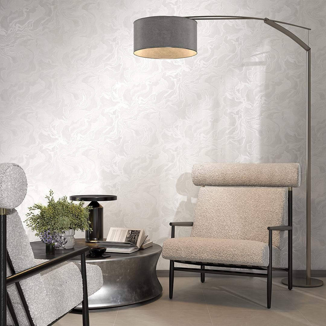 Новое прочтение каррарского мрамора, известного на весь мир в том числе благодаря выразительному узору. Детальная графика на обоях и тиснение оживляют благородный рисунок камня. В гамме серии спокойные светлые тона – белый, бежевый, серый. Насыщенная палитра – синий и чёрный. Экстравагантное черно-белое решение. Впервые в коллекциях дизайнерских обоев KERAMA MARAZZI как декор на полотнах эффект глиттер. Создает на поверхности деликатное мерцание.